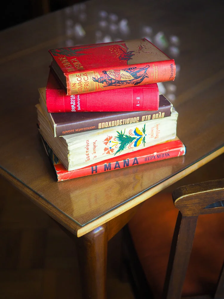 Κατάγομαι από οικογένεια βιβλιοφάγων. Από τότε που θυμάμαι τον εαυτό μου, στο σπίτι μας υπήρχαν σε κάθε δωμάτιο βιβλιοθήκες και ραφιέρες καθώς και άφθονες διάσπαρτες στοίβες βιβλίων. Βιβλίων χιλιοδιαβασμένων, βιβλίων μισοδιαβασμένων, βιβλίων αδιάβαστων. Βιβλίων καινούργιων, βιβλίων παλιών, βιβλίων πάρα πολύ παλιών. Βιβλίων αγορασμένων, βιβλίων δανεισμένων, βιβλίων χαρισμένων. Η μητέρα μου με πήγαινε συχνά για βόλτες στα βιβλιοπωλεία να διαλέξουμε μαζί βιβλία, ενώ κάθε τόσο μου εμφάνιζε βιβλία που είχε φυλάξει από τη δική της παιδική ηλικία και θεωρούσε ότι θα μου άρεσε να τα διαβάσω. Φυσικά, όταν ήμουν μικρούλα δεν καταλάβαινα τη διαφορά - πολλές φορές μάλιστα μπορεί και να σνόμπαρα κάποια από αυτά γιατί έβρισκα την εικονογράφιση ντεμοντέ ή με ξένιζε το πολυτονικό. Όσο μεγάλωνα, όμως, και ενώ σταδιακά οι γονείς μου με μυούσαν στον κόσμο του vintage και των αντικών, η αγάπη για οτιδήποτε παλιό άρχιζε να με συνεπαίρνει όλο και περισσότερο. Έτσι, στην καθιερωμένη μας βόλτα στο παζάρι στο Μοναστηράκι τις Κυριακές, πάντα θα ξετρυπώναμε και θα αγοράζαμε μαζί, μεταξύ άλλων, και βιβλία - όπως επίσης και στα ταξίδια μας.