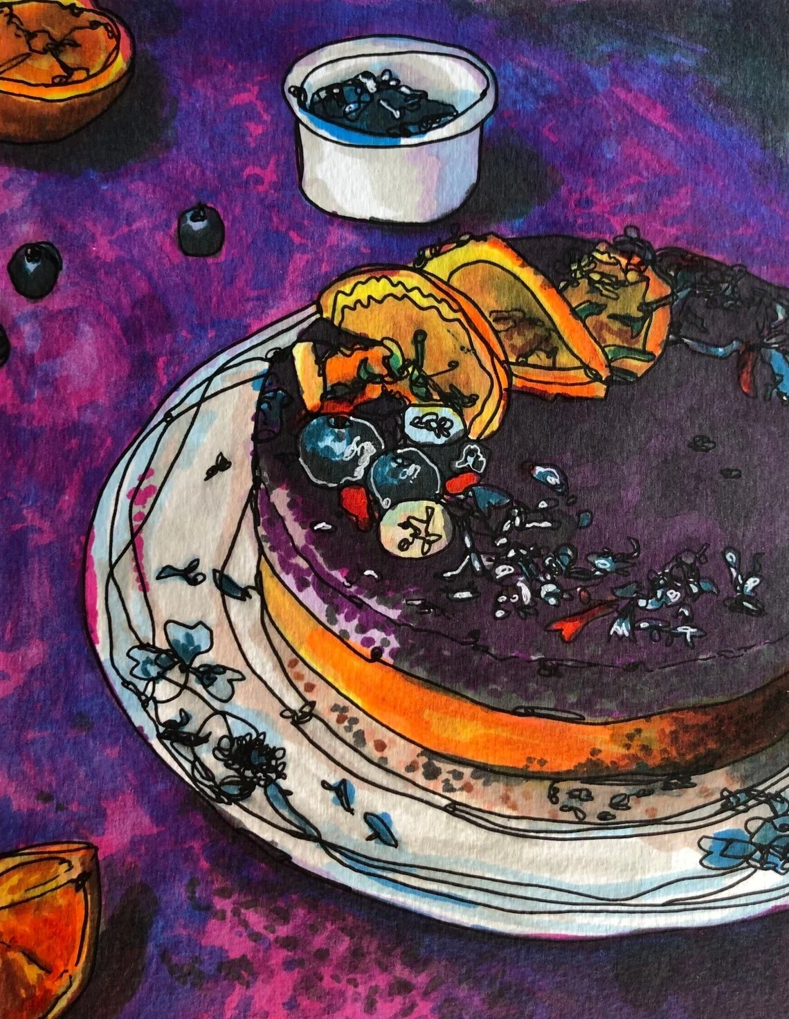 Everyone will agree that the internet has its pluses and minuses. One of the best things it’s brought into our lives, though, is unexpectedly meeting people from all over the planet, who share the same interests and aesthetic with us. And just like that, one random evening I received a message in my inbox from an artist who was asking for my permission to sketch our blueberry and orange vegan cheesecake!