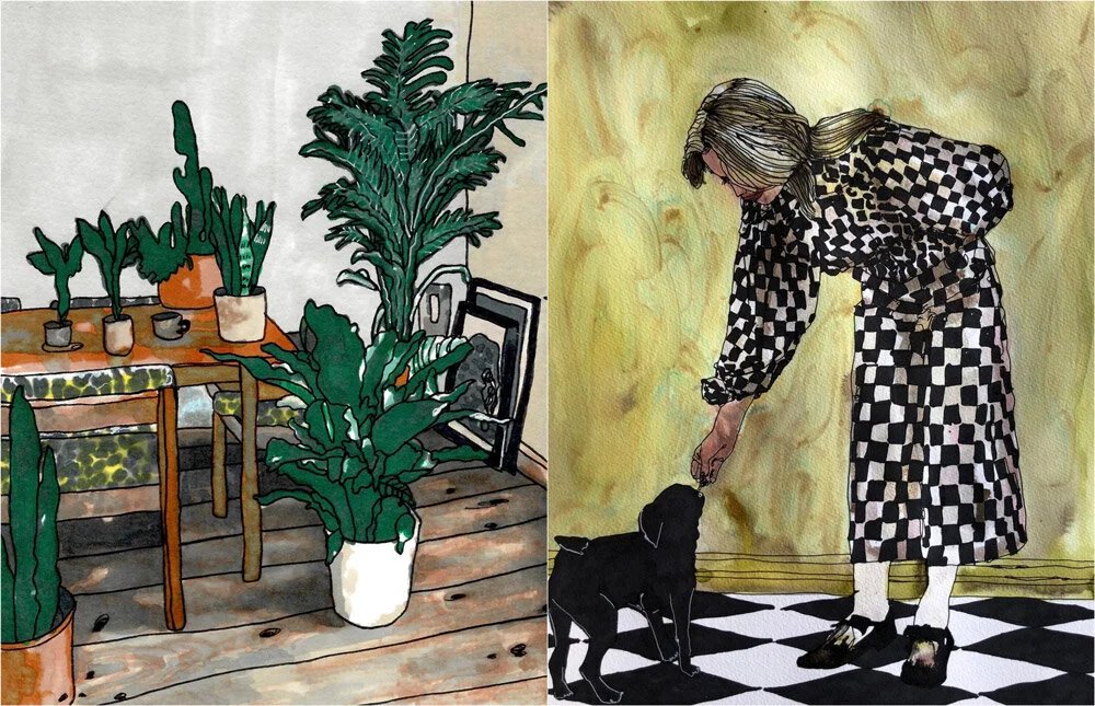Γεια σας! Είμαι καλλιτέχνιδα/εικονογράφος και ζω στο Λίνκολν του Λινκονσάϊρ της Αγγλίας. Μου αρέσει να σχεδιάζω και να ζωγραφίζω ό,τι με εμπνέει οπτικά. Ένα μεγάλο μέρος της πιο προόσφατης δουλειάς μου επικεντρώνεται στην αναπαράσταση δωματίων σε σπίτια ανθρώπων και σε γυναικεία πορτρέτα. Η δουλειά μου περιλαμβάνει πολλές λεπτομέρειες και συνδυάζει μόδα, ζώα, φαγητό και εσωτερικούς χώρους.