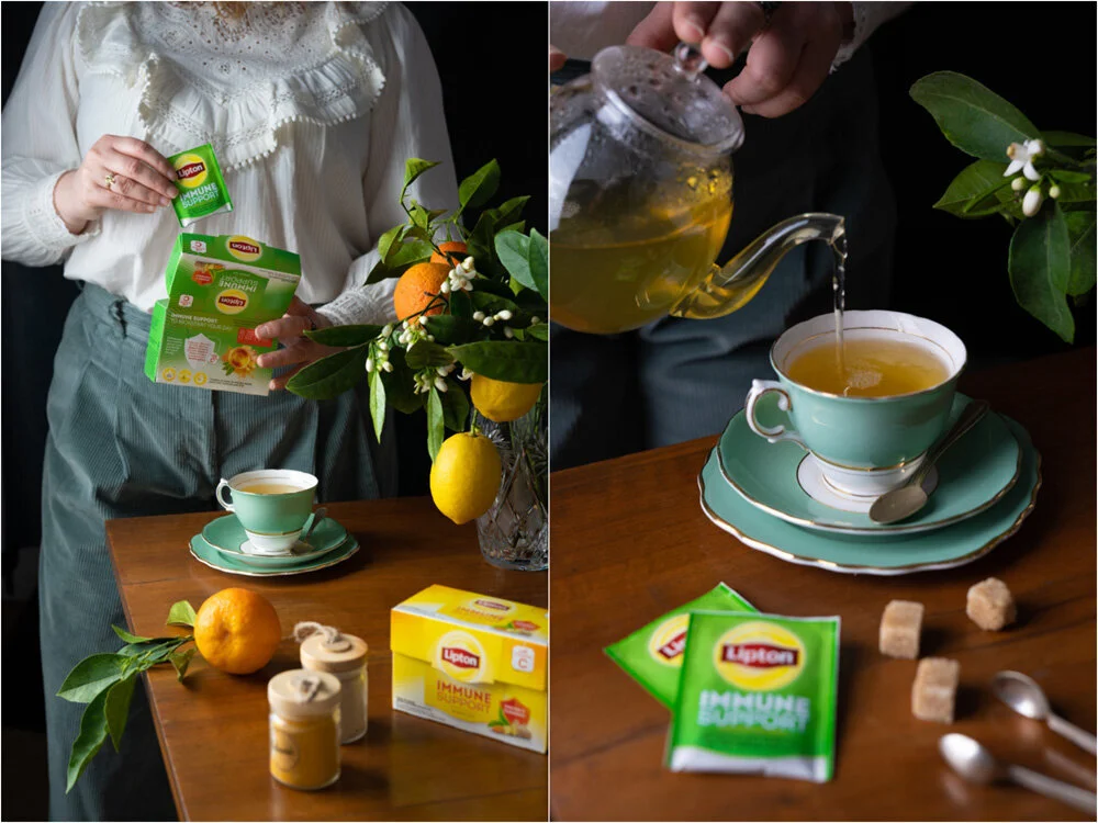 Ήθελα, ωστόσο, καιρό τώρα, να σας μιλήσω περισσότερο για τα οφέλη του τσαγιού για την υγεία μας. Ευτυχώς, μόλις μου δόθηκε η καλύτερη αφορμή, χάρη στην κυκλοφορία δύο νέων γεύσεων τσαγιού από τη Lipton! Το τσάι Lipton Immune Support έχει δημιουργηθεί με επίκεντρο την ενίσχυση του ανοσοποιητικού μας, το οποίο τόσο έχει καταπονηθεί από τις συνθήκες που αντιμετωπίζουμε τον τελευταίο καιρό. Πρόκειται για δύο πεντανόστιμα και αρωματικά τσάγια σε φακελάκι, ένα μαύρο και ένα πράσινο, συνδυασμένα με κουρκουμά και τζίντζερ και επιπλέον εμπλουτισμένα με βιταμίνη C!